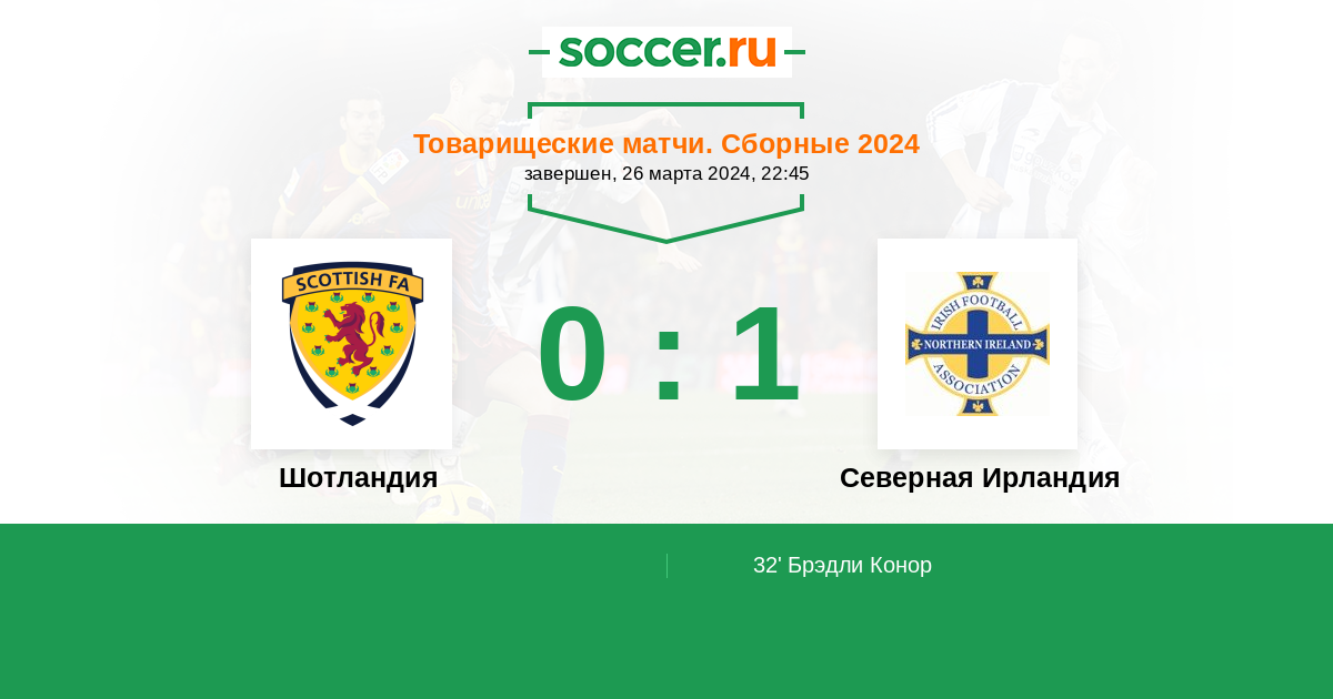 32' (0:1) Брэдли Конор (2)