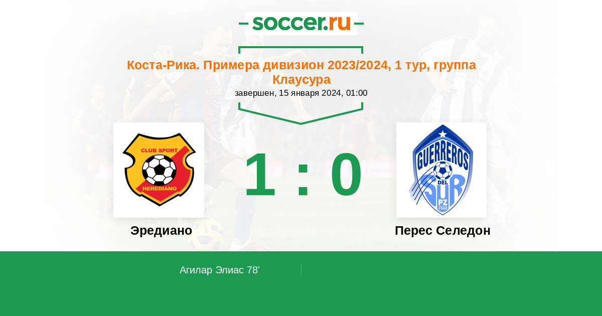 78' (1:0) Агилар Элиас