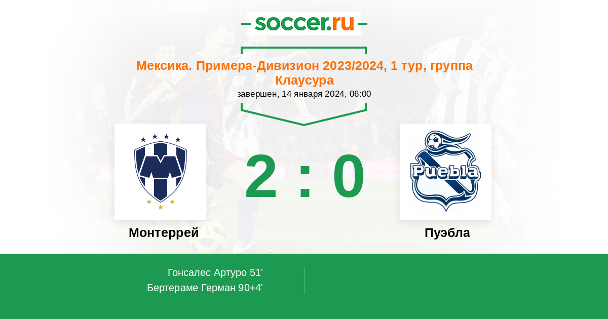 51' (1:0) Гонсалес Артуро (21) (Агирре Эрик (14))