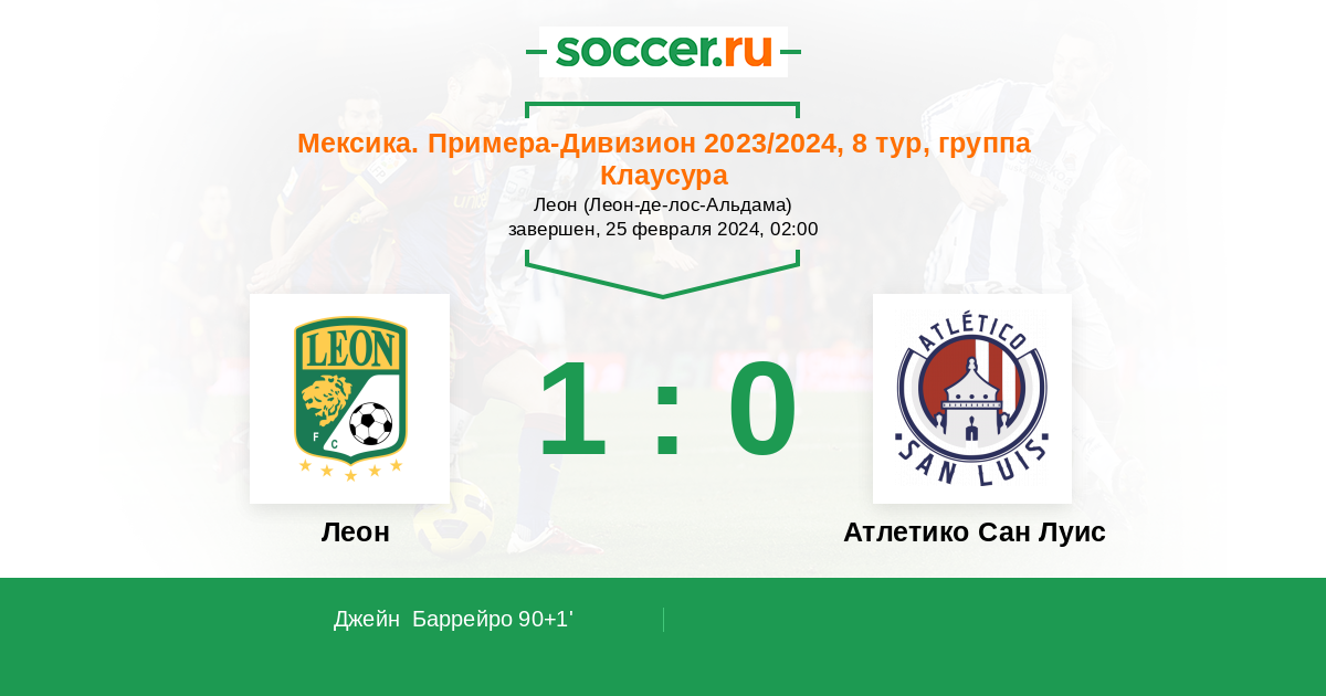 Гол90+1' (1:0) Джейн Баррейро (21)