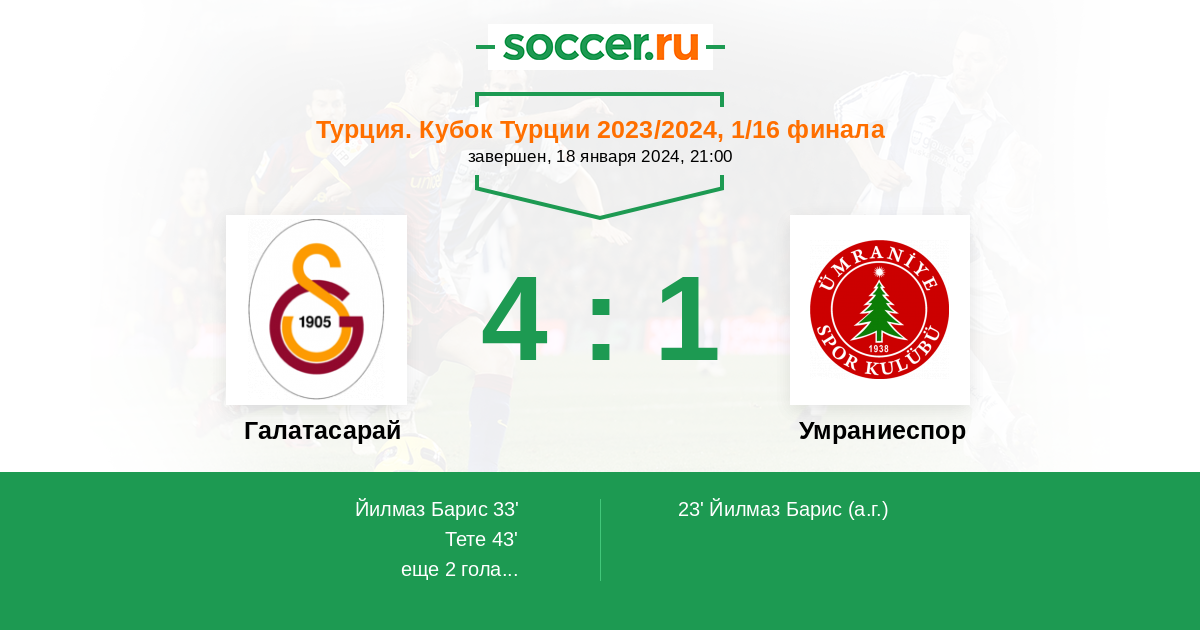 23' (0:1) Автогол Йилмаз Барис (53)