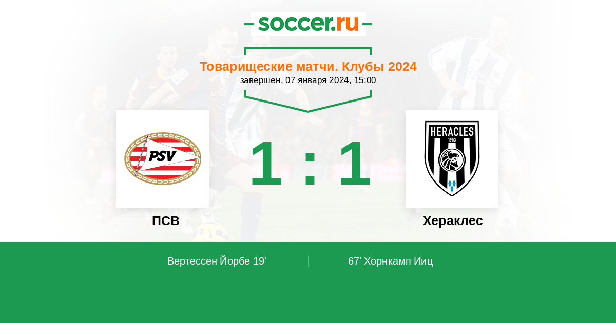 67' (1:1) Хорнкамп Ииц (23) (Рубен Рускен (12))