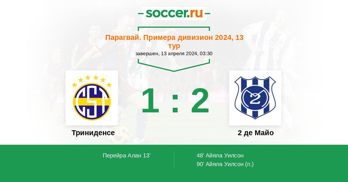 13' (1:0) Перейра Алан (35) (Алонсо Вилдо Хавьер (20))
