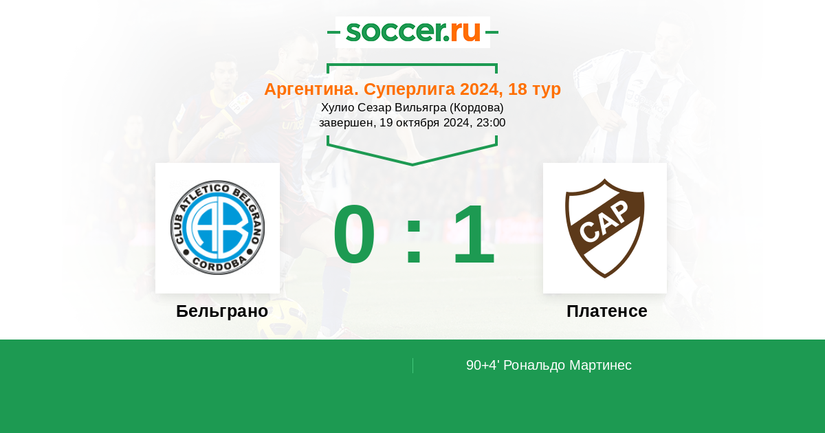 90+4' (0:1) Рональдо Мартинес (77) (Окампо Агустин (10))