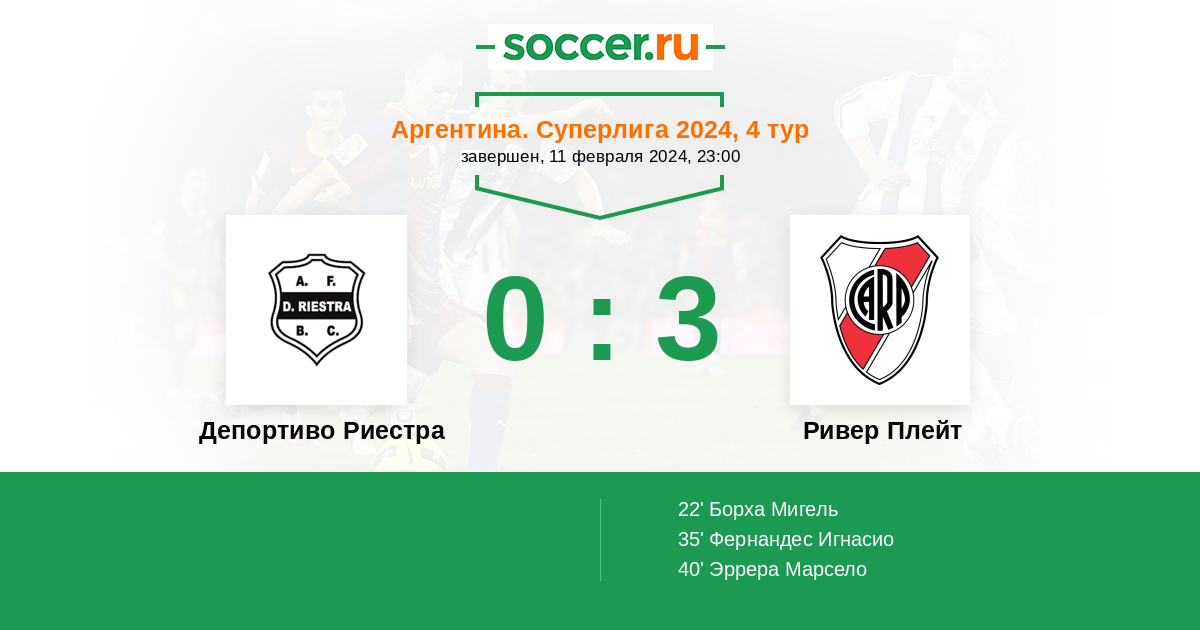 40' (0:3) Эррера Марсело (15) (Фернандес Игнасио (26))