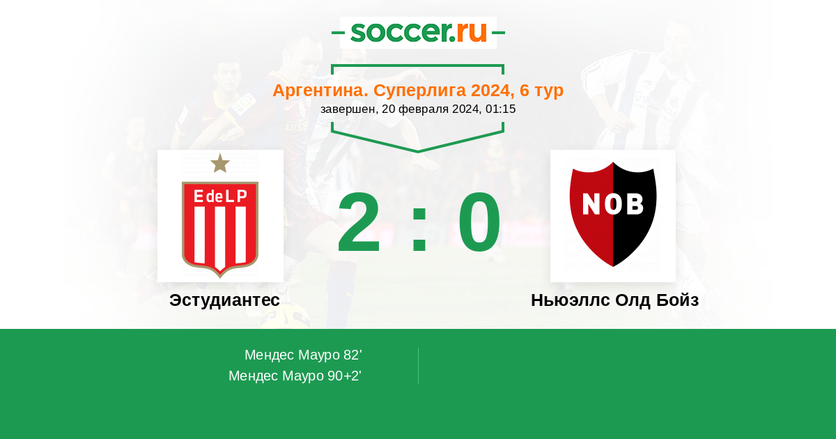 82' (1:0) Мендес Мауро (16) (Паласиос Тьяго (32))