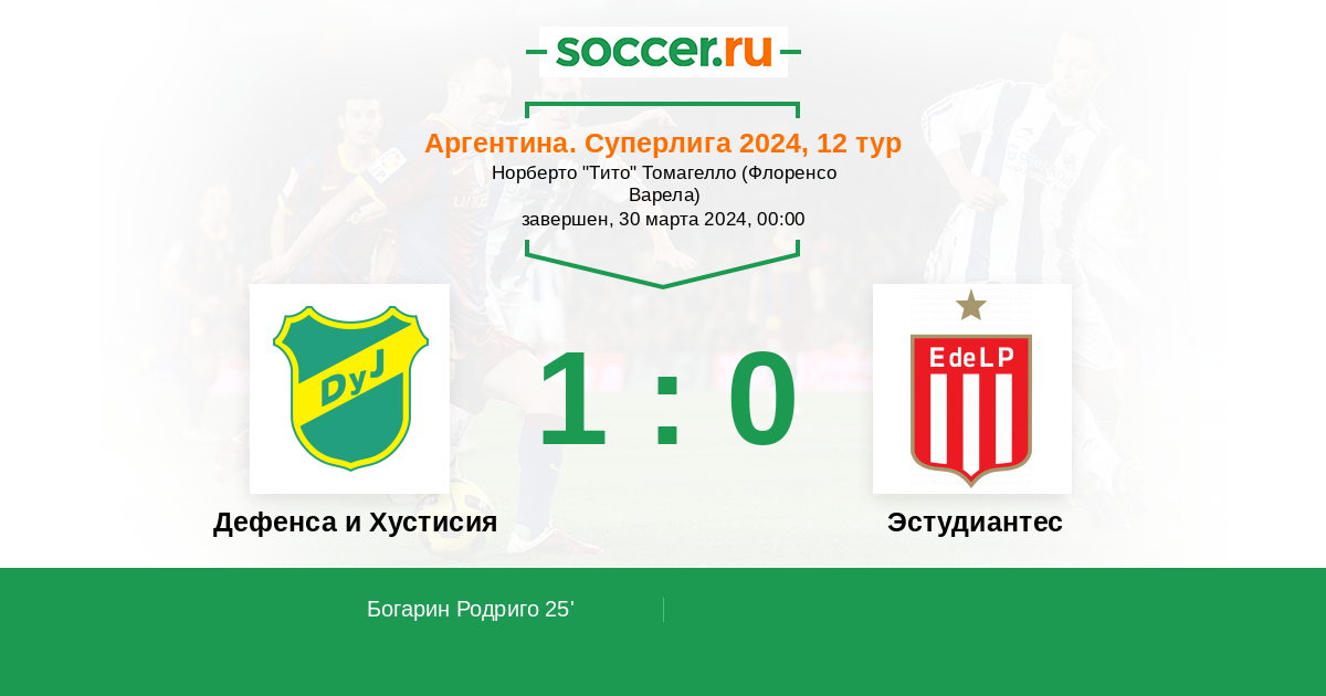 25' (1:0) Богарин Родриго (10) (Лопес Кевин (30))