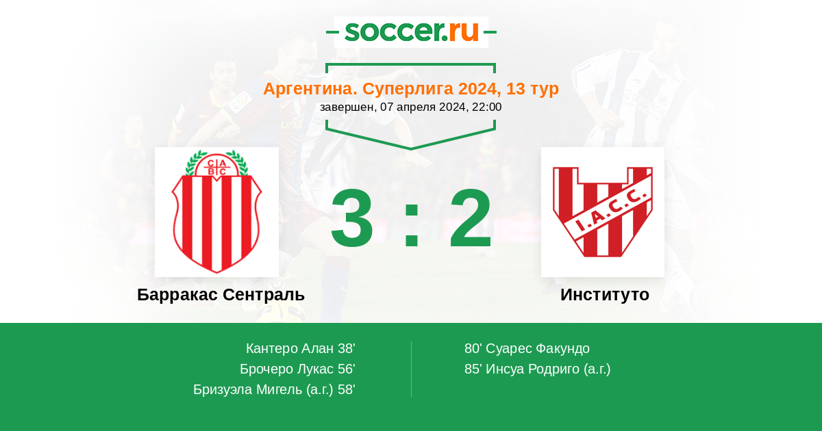 80' (3:1) Суарес Факундо (9) (Лазаро Херемиас (16))