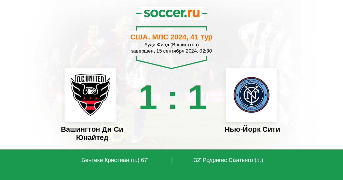 Вашингтон Ди Си Юнайтед - Нью - Йорк Сити ! Команды играют весьма результативно , между собой также редко сушат игру . Предположу ,что и этот матч будет весьма голевым .