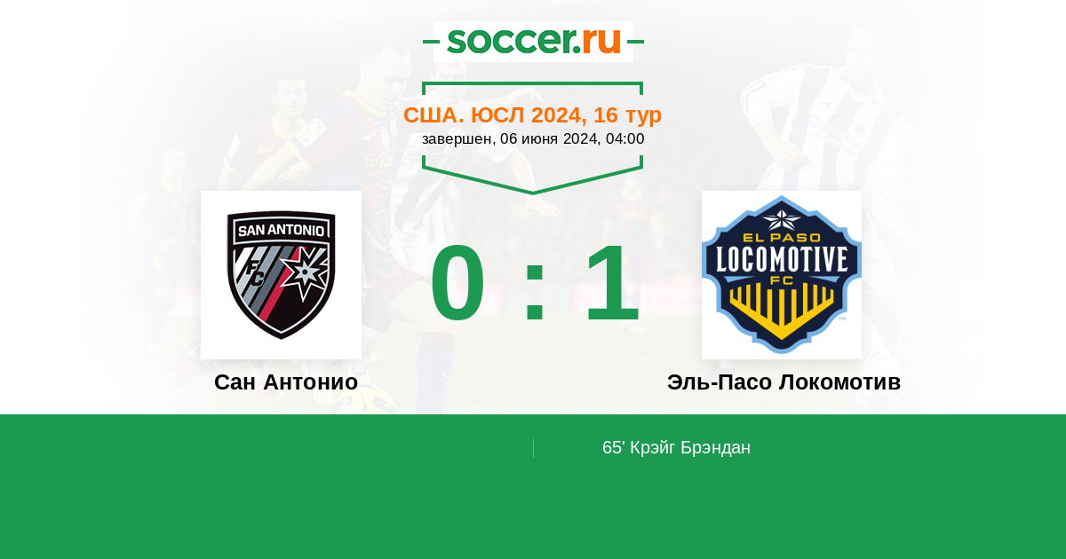 65' (0:1) Крэйг Брэндан (2)