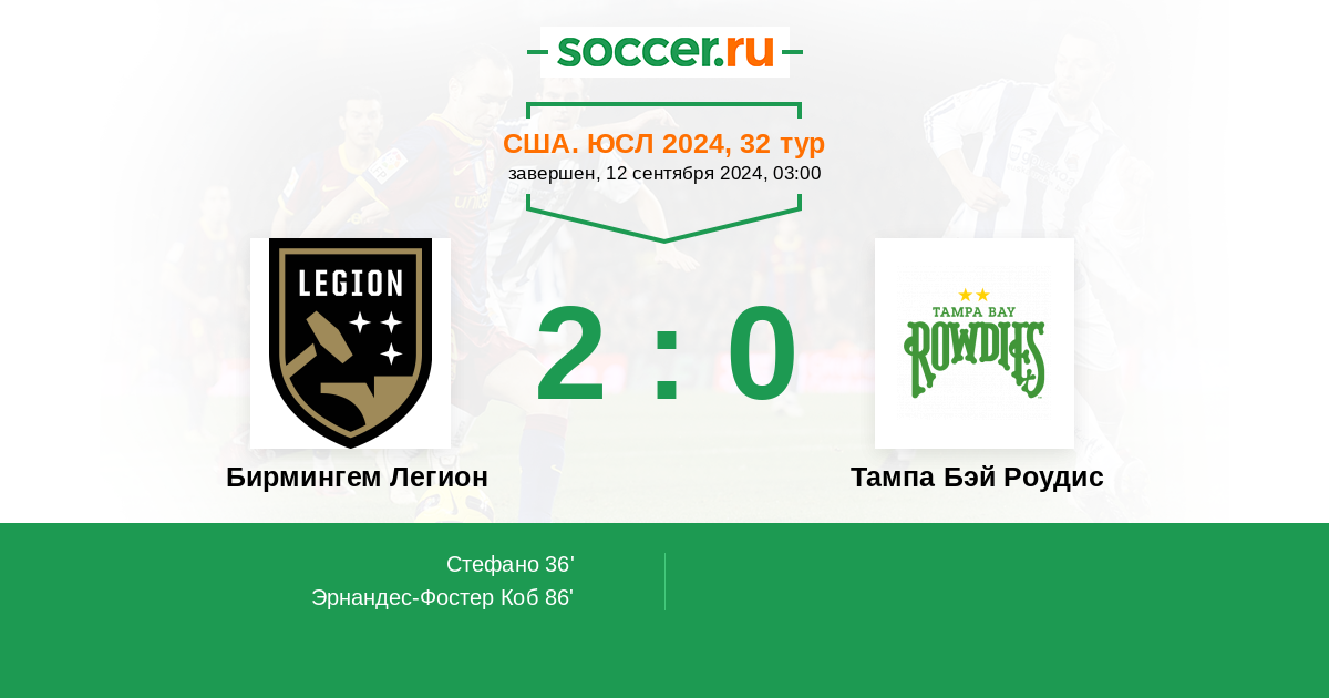 36' (1:0) Стефано (29) (Додсон Дерек (14))