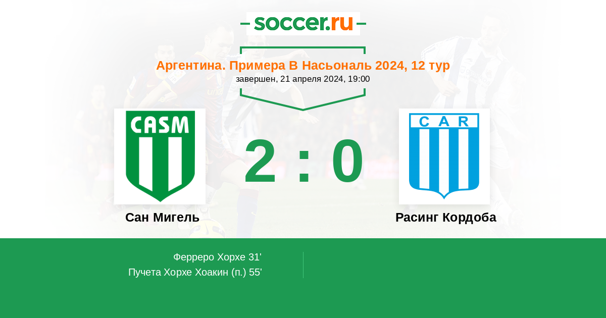55' (2:0) Пучета Хорхе Хоакин
