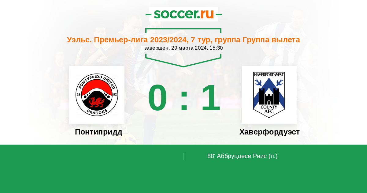 Матчи Уэльс. Премьер-лига 2023/2024