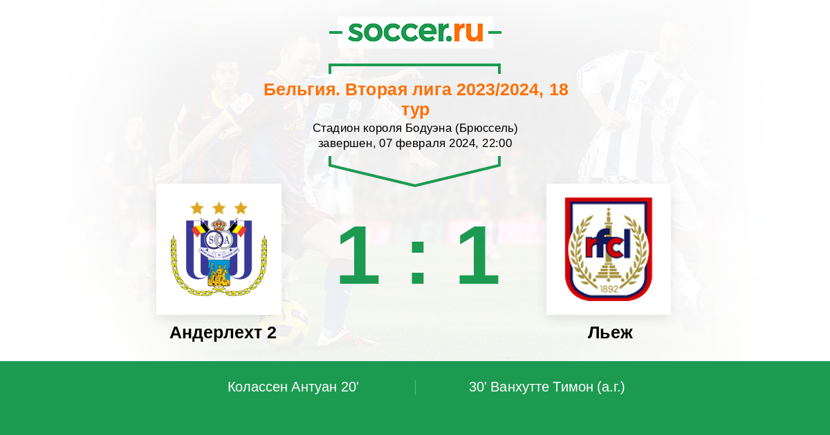 30' (1:1) Автогол Ванхутте Тимон (63)