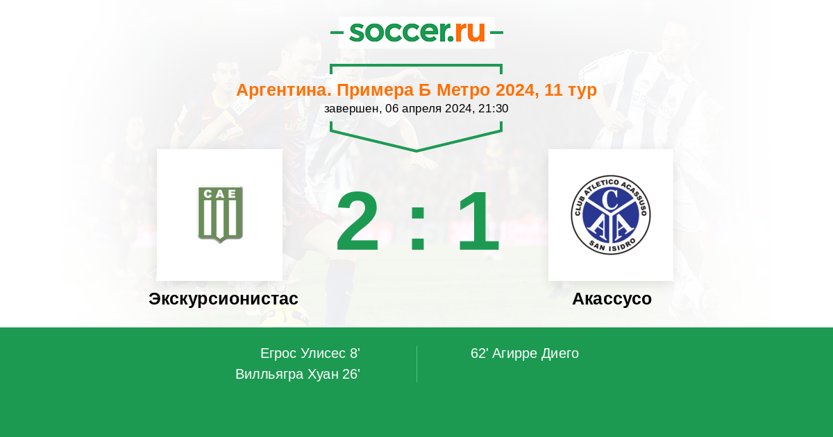 62' (2:1) Агирре Диего