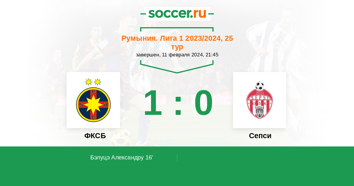16' (1:0) Бэлуцэ Александру (25) (Алхассан Баба (42))
