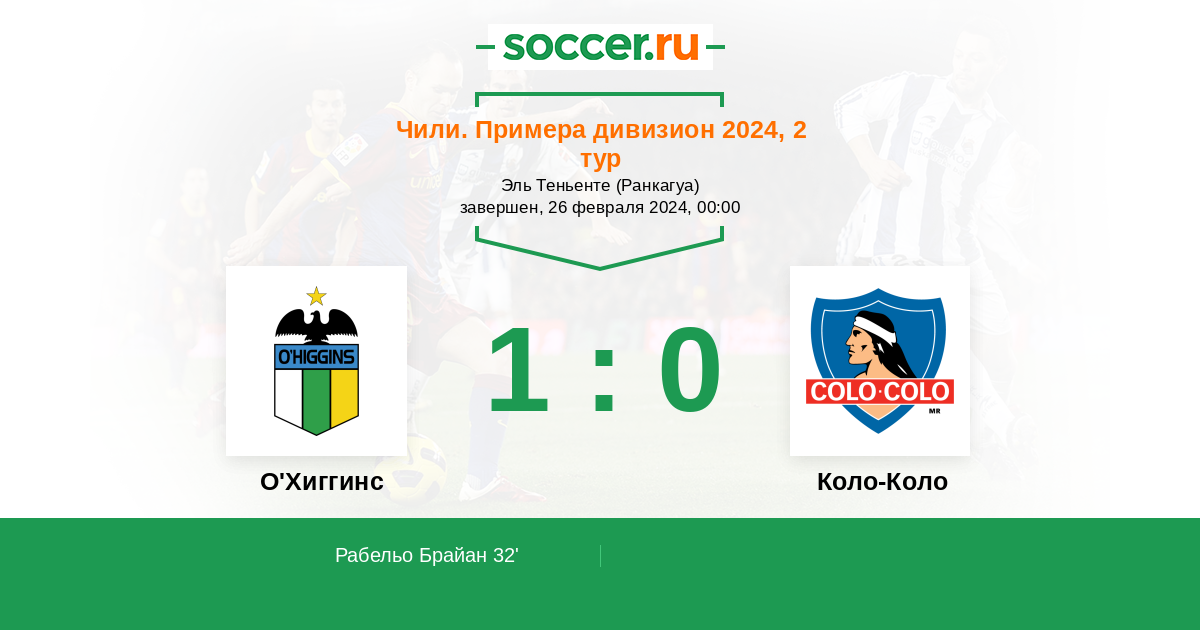 32' (1:0) Рабельо Брайан (10)