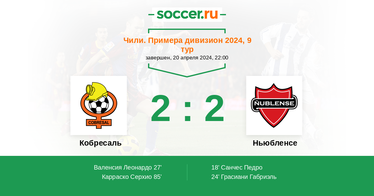 18' (0:1) Санчес Педро (11) (Виктор Исмаил Соса (26))