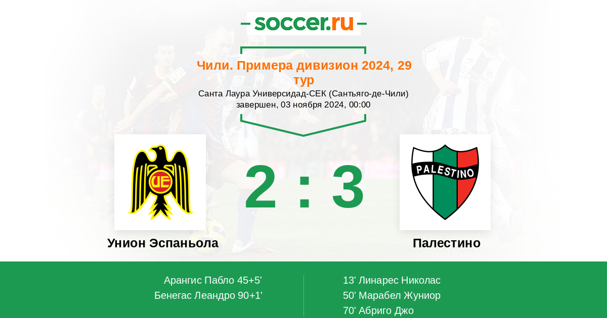 Гол90+1' (2:3) Бенегас Леандро (9) (Рамирес Симон (16))