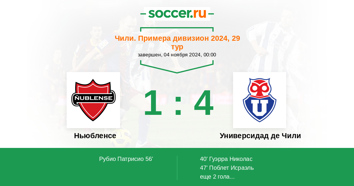 40' (0:1) Гуэрра Николас (11) (Тапия Игнасио (3))