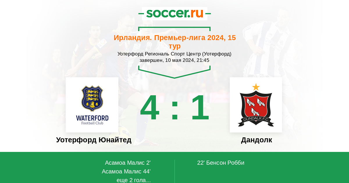 44' (2:1) Асамоа Малис (11) (Пэрсонс Коннор (10))