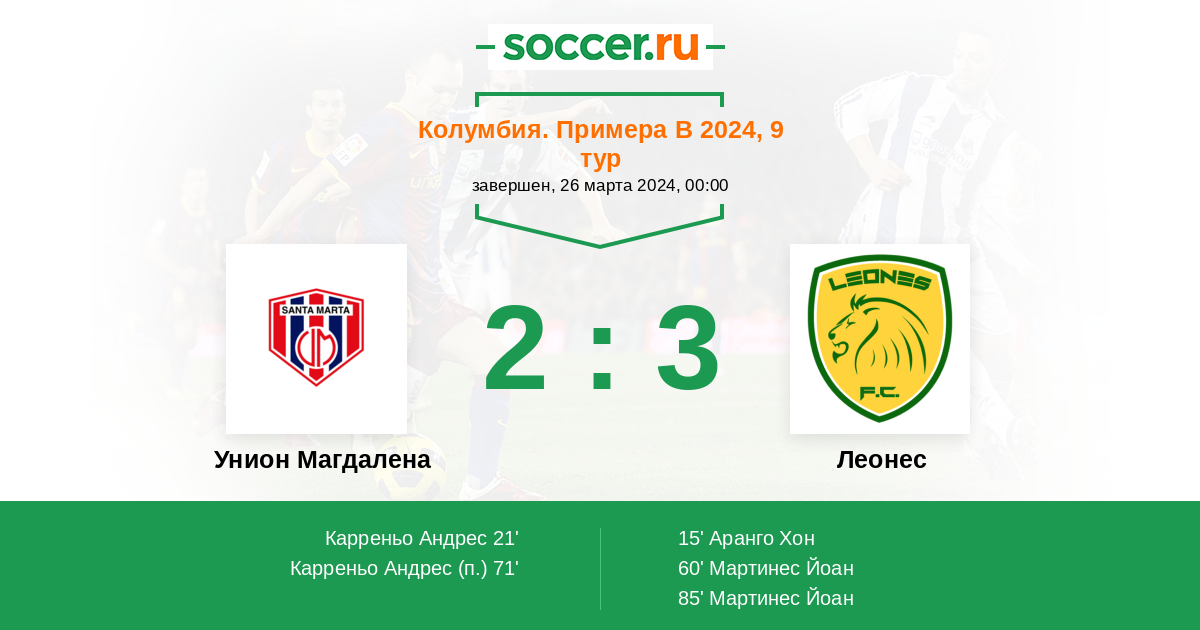 21' (1:1) Карреньо Андрес