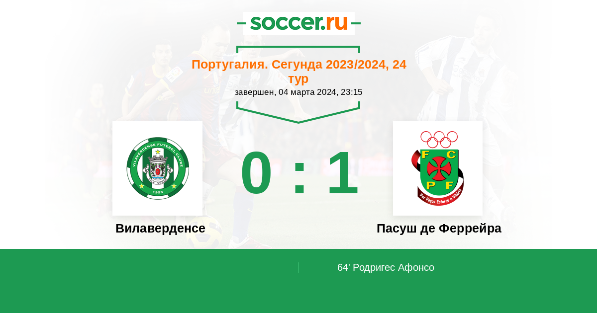 64' (0:1) Родригес Афонсо (79) (Пауло Маркос (17))