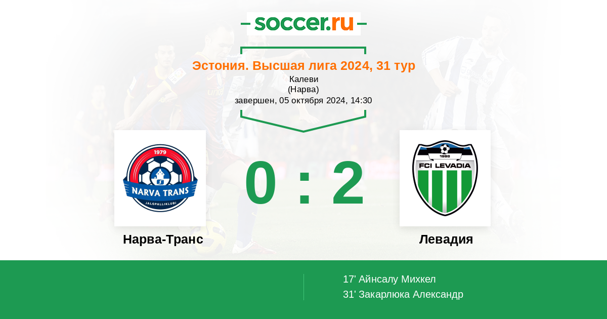 17' (0:1) Айнсалу Михкел (11) (Мусаба Ричи (19))