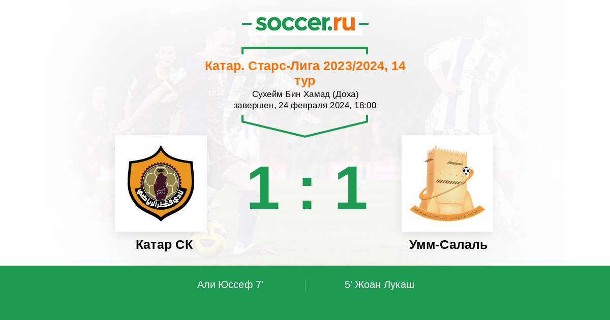 5' (0:1) Жоан Лукаш (9) (Таннане Уссама (14))