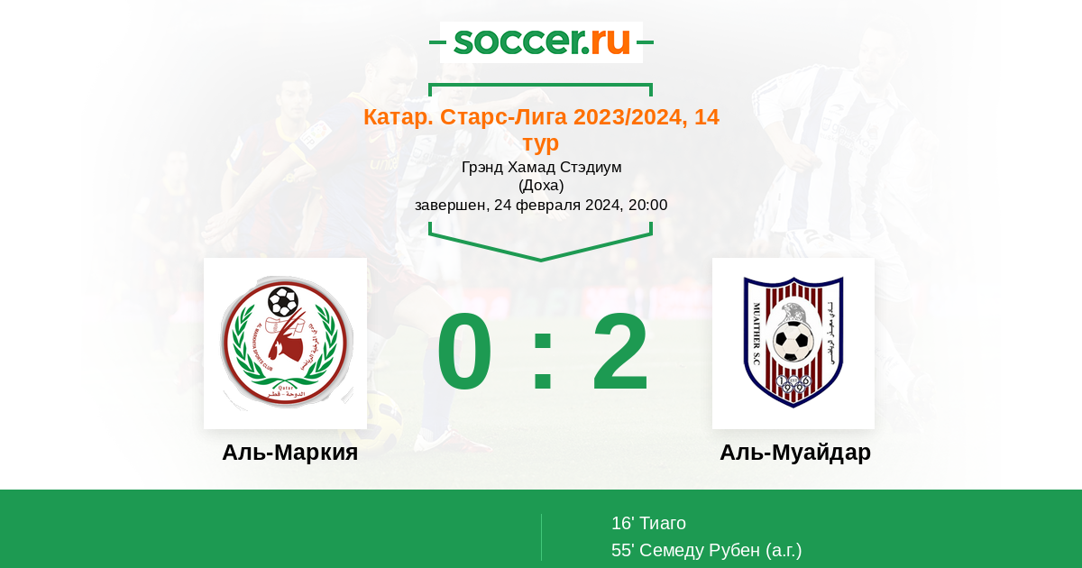 16' (0:1) Тиаго (9) (Ассуни Айман (10))