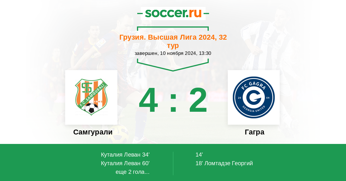 34' (1:2) Куталия Леван (35) (Жефиньо Алмейда (8))