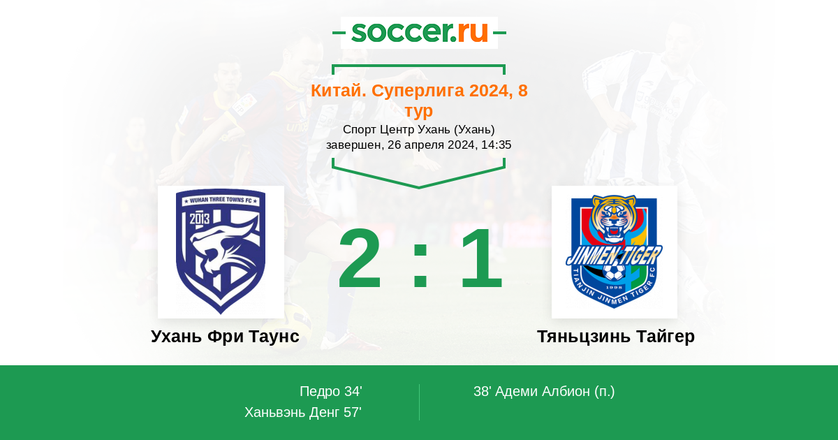34' (1:0) Педро (9) (Жипенг Цзян (4))