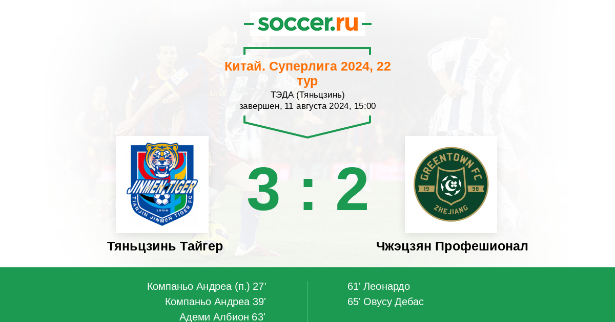 Тяньцзинь Тайгер - Чжэцзян Профешионал