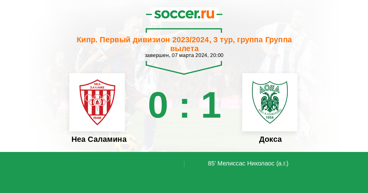 85' (0:1) Автогол Мелиссас Николаос (1)