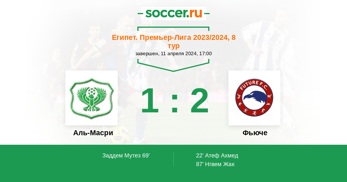 87' (1:2) Нгвем Жак (13) (Махмуд Шаабан (21))