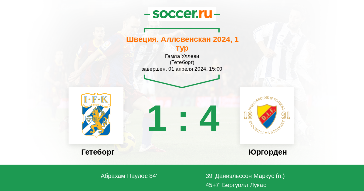 39' (0:1) Даниэльссон Маркус (3)
