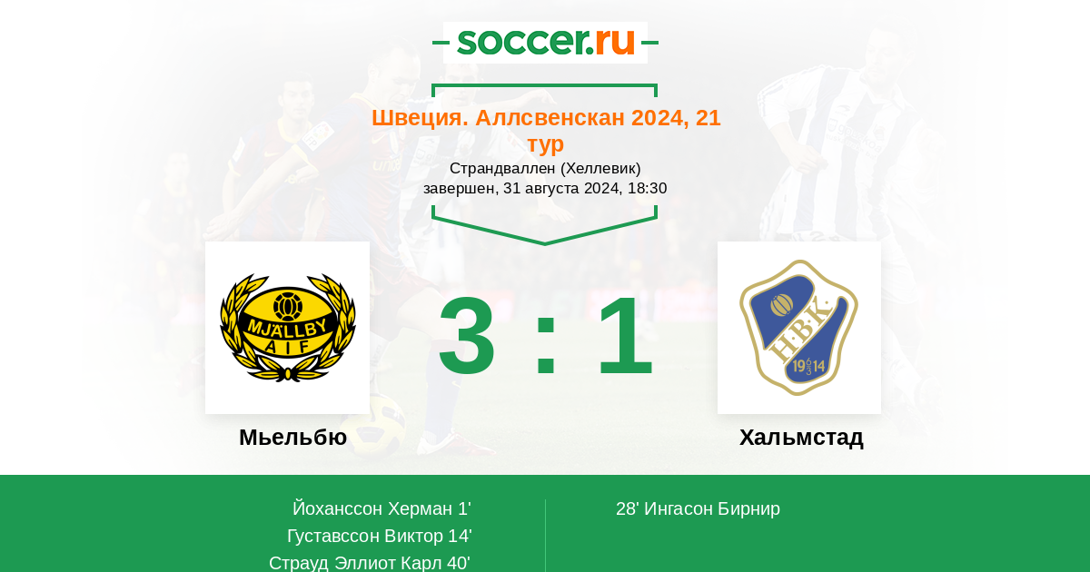 1' (1:0) Йоханссон Херман (14) (Бергстрем Якоб (18))