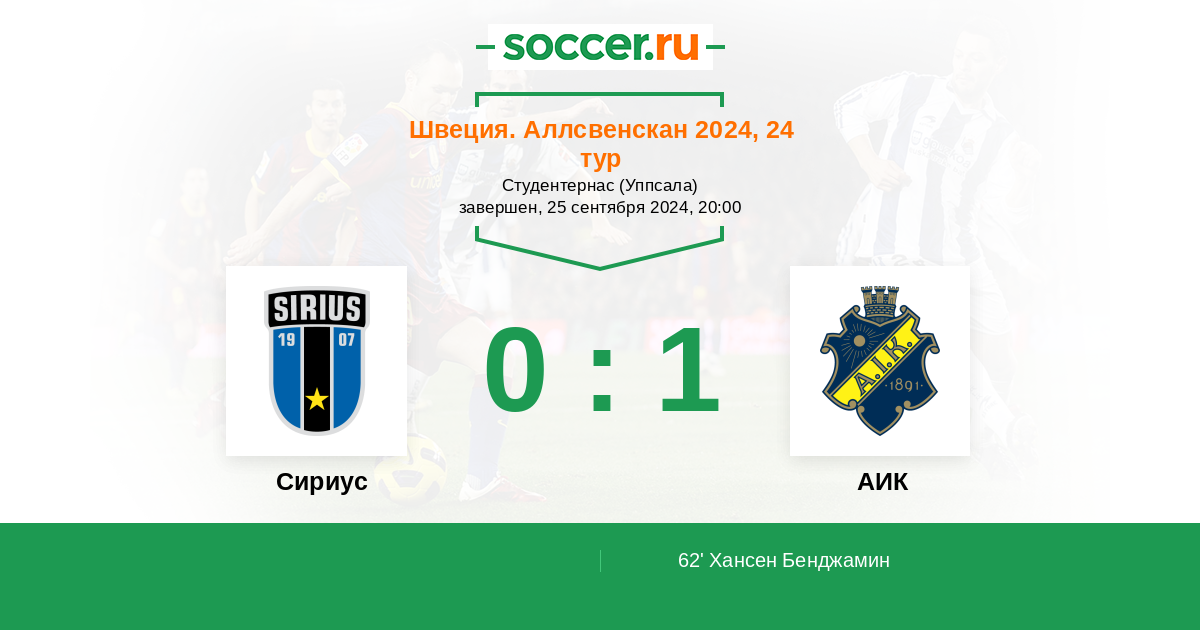 62' (0:1) Хансен Бенджамин (16) (Валакари Онни (8))