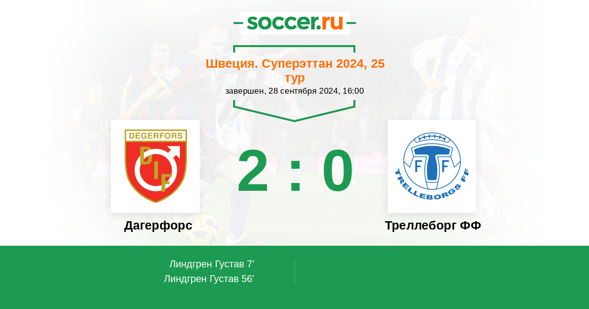 56' (2:0) Линдгрен Густав (9) (Вукоевич Диян (10))