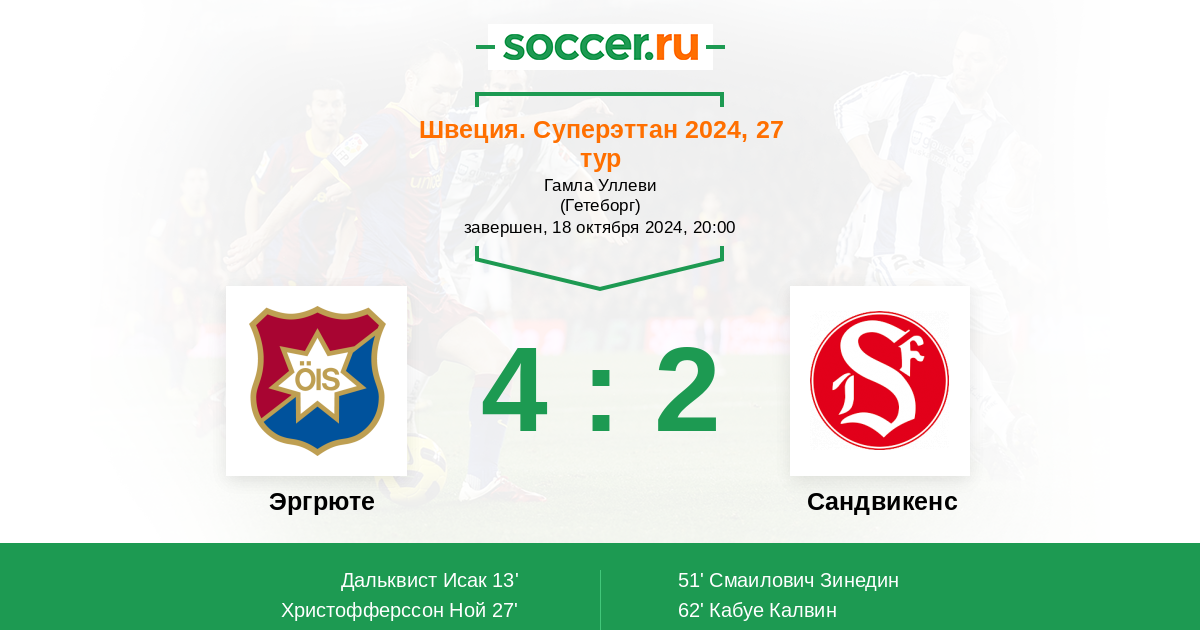 27' (2:0) Христофферссон Ной (11) (Сана Тобиас (22))