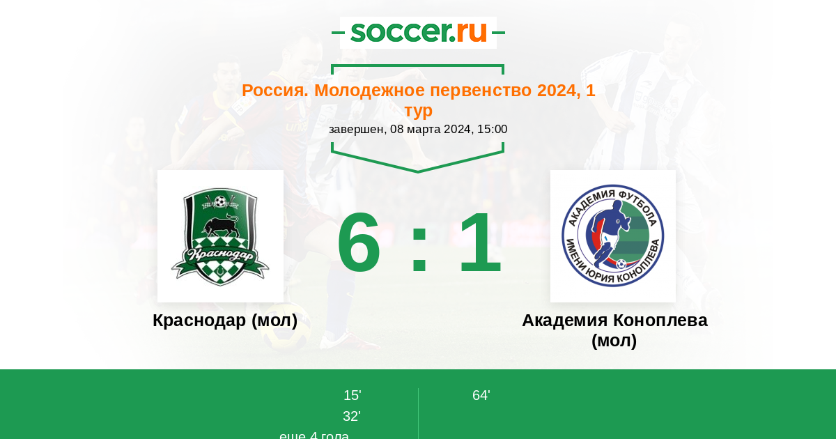 15' (1:0) I. Pugachevskiy