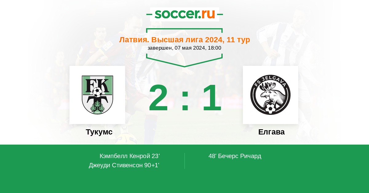 23' (1:0) Кэмпбелл Кенрой (66) (Анманис Каспарс (11))