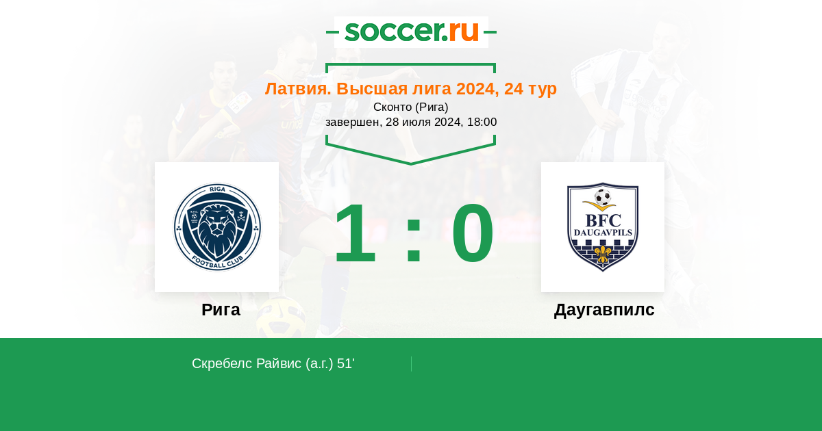 51' (1:0) Автогол Скребелс Райвис (8)