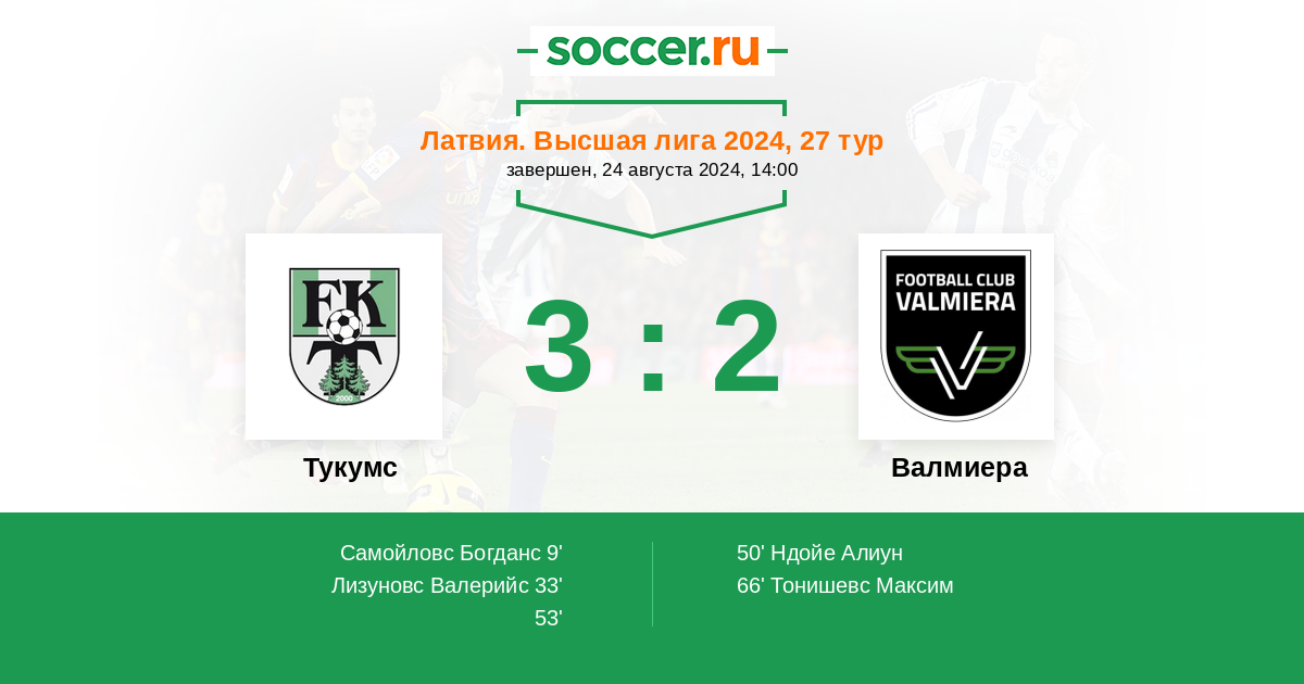 33' (2:0) Лизуновс Валерийс (90) (Самойловс Богданс (10))