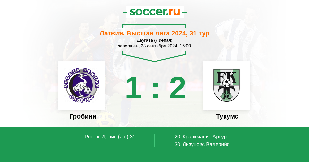30' (1:2) Лизуновс Валерийс (90)