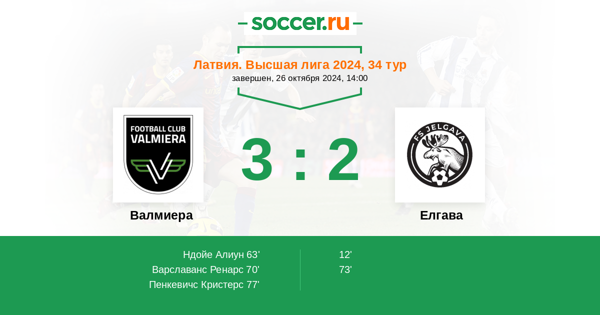 70' (2:1) Варславанс Ренарс (14) (J. Porsan-Clemente)