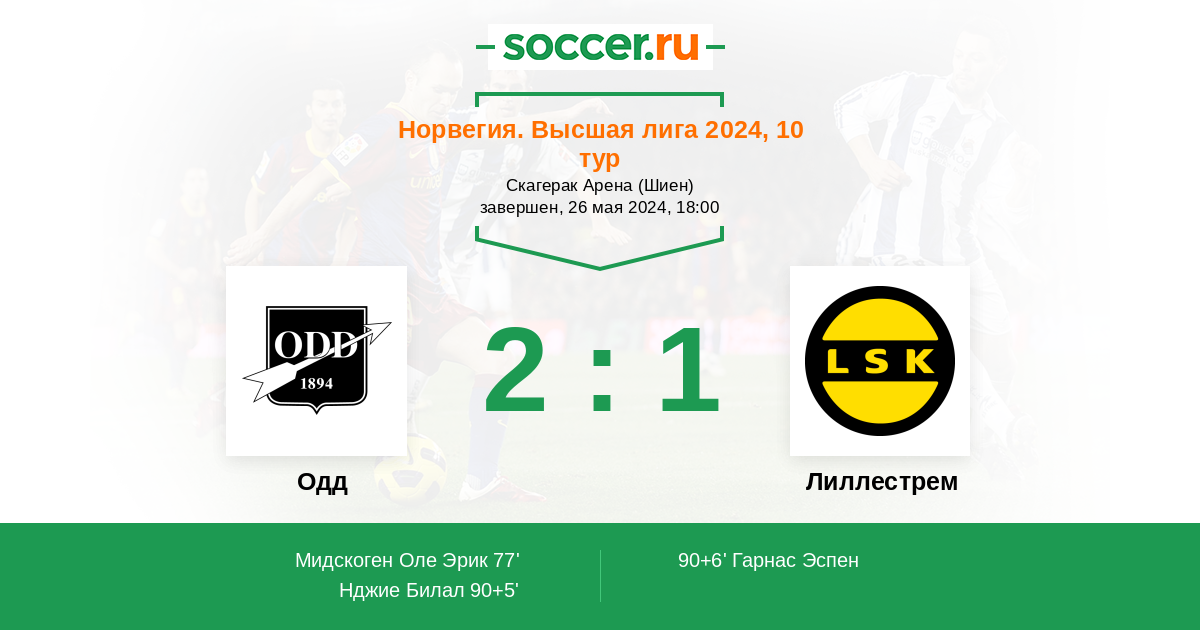 Гол77' (1:0) Мидскоген Оле Эрик (9) (Рууд Эспен (2))