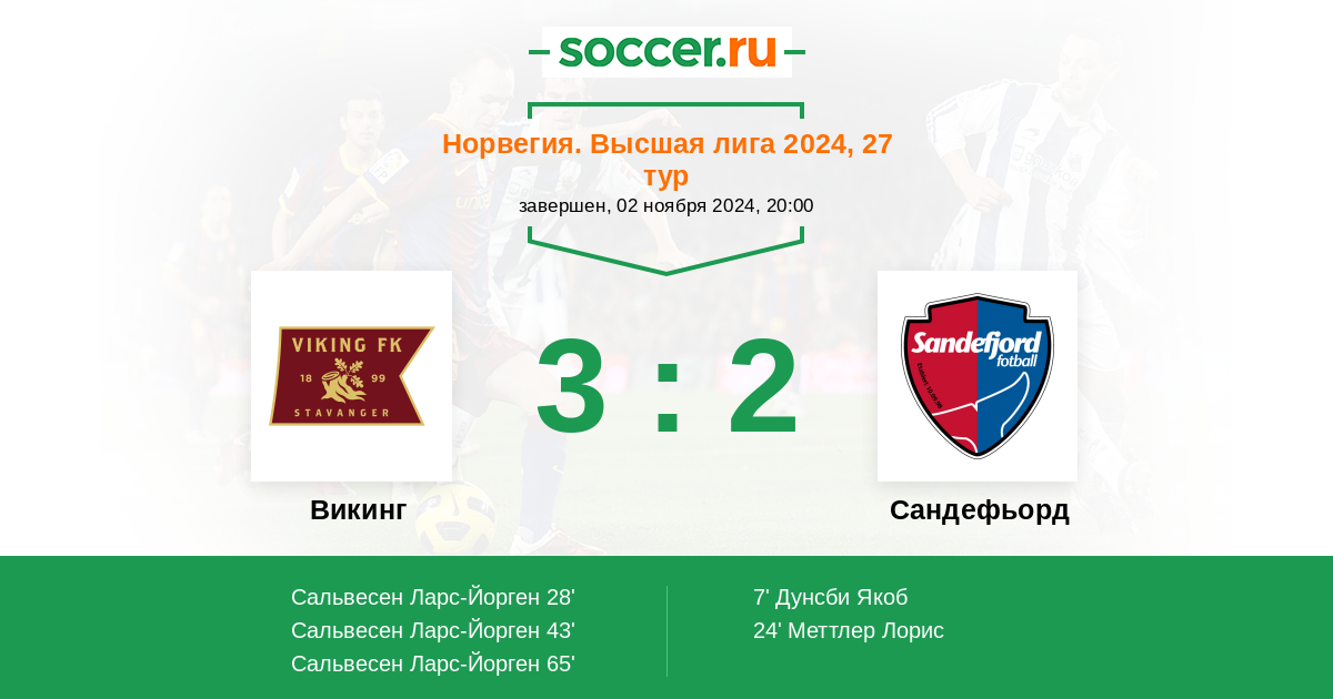 65' (3:2) Сальвесен Ларс-Йорген (9) (де Ланлай Янн-Эрик (11))