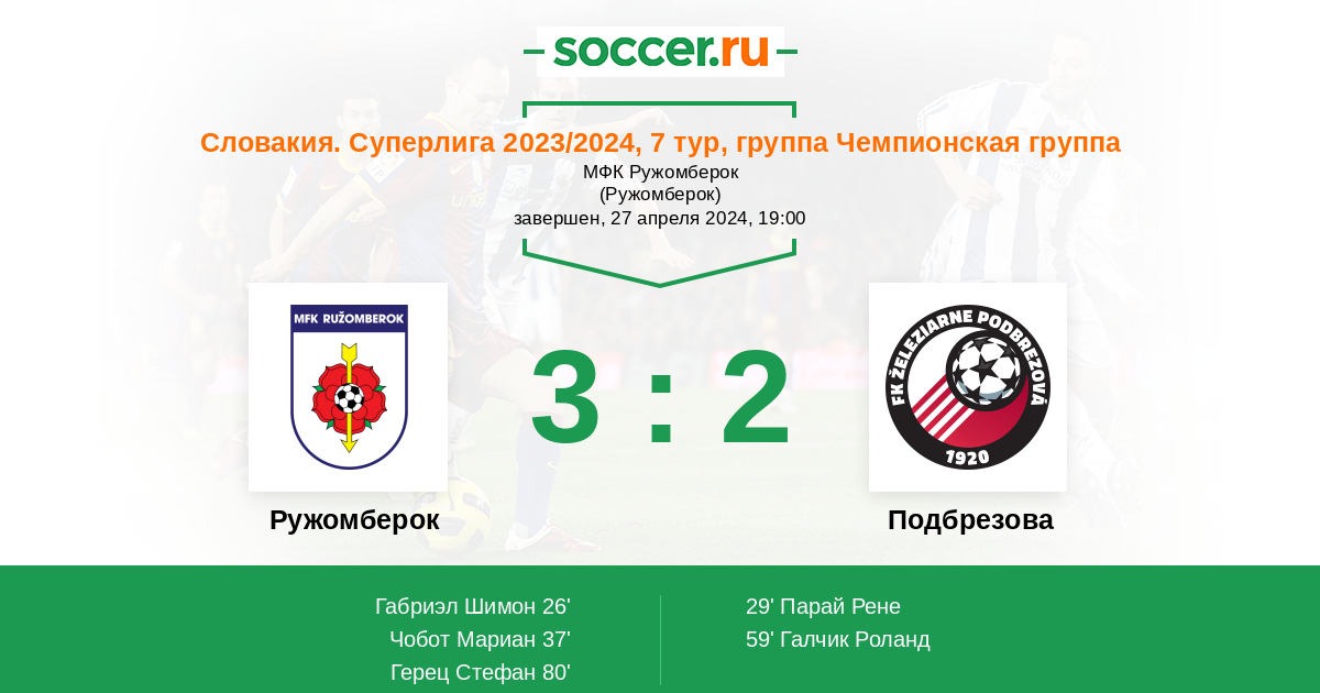 26' (1:0) Габриэл Шимон (22)