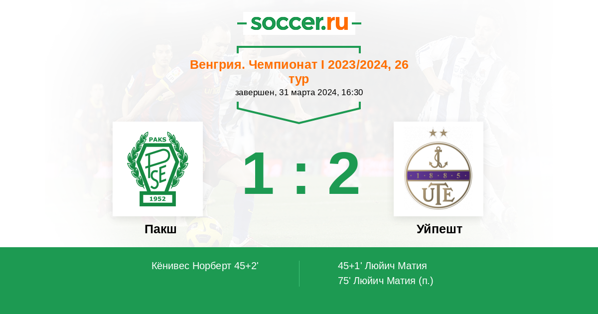 45+1' (0:1) Люйич Матия (88) (Хусти Андрас (18))